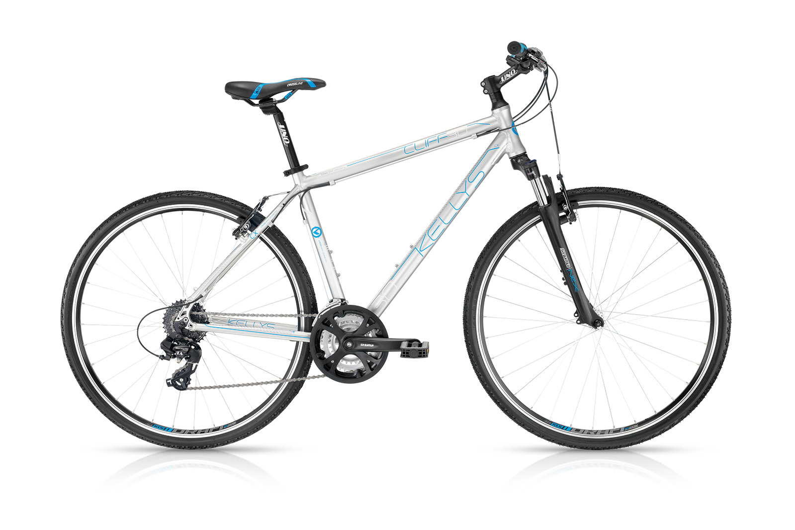 rám KELLYS Crosslite 6061 alloyveľkosť rámu 430mm (17″) / 480mm (19″) / 530mm (21″)vidlica SR SUNTOUR NEX HLO, 63mm, coil / Speed Lockouthlav.zloženie semi-integratedstred.zloženie cartridge (122mm)kľuky SR SUNTOUR XCC (48x38x28) – length 170mm (17″), 175mm (19″ – 23″)radenie SHIMANO ST-EF51-8 EZ-fire Plusprešmykač SHIMANO M191 (31.8mm)menič SHIMANO TX800počet prevodov 24kazetový pastorok SHIMANO CS-HG200-8 (12-32)reťaz KMC Z7 (114 článkov)brzdy APSE Artek V-brakebrzdové páky SHIMANO ST-EF51-8 EZ-fire Plusbrzdové lanká DRIVING Force SCS (SlickCableSystem)náboje KLS Drive (32 dier)ráfiky KLS Draft 622×19 (32 dier / nitované)výplet U.C.P. steelplášte INNOVA 44-622 (700x42C)predstavec KALLOY Uno – diam 28.6mm / bar bore 25.4mm / 30° / length 90mmriadidlá KALLOY Uno – diam 25.4mm / width 620mm (17″ – 19″), 640mm (21″ – 23″)rukoväte KLS Advancer 2Densitysedlovka KALLOY Uno – diam 27.2mm / length 350mmsedlo KLS CrossLinepedále plast – NonSlip