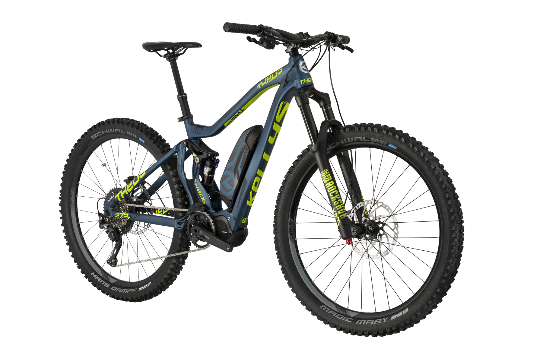 rám KELLYS Allmountain 27.5 / Four-bar link, zadný zdvih 140mm, tapered HT, internal routing, 12x148mm Boost thru axleveľkosť rámu M / Lmotor SHIMANO STEPS E8000radiaca jednotka SHIMANO SW-E7000 switch for motor assiscyklopočítač SHIMANO SC-E 7000batéria SHIMANO BT-E8010, 36V / 504Wh / capacity 14Ah / powered by SIMPLOvidlica ROCK SHOX Yari RC (27.5) Boost, 150mm, DebonAir / Motion Control RC / Maxle Stealth 15mm thru axlezadný tlmič ROCK SHOX Monarch RT, Solo Air / Rapid Recovery / Open-Pedal (200x57mm)hlav.zloženie FSA 1.5 integratedkľuky SHIMANO FC-E8000 (34) – dĺžka 170mmradenie SHIMANO SLX M7000 Rapidfire Plus / SW-E7000 switch for motor assistmenič SHIMANO Deore XT M8000 (direct mount)počet prevodov 11kazetový pastorok SHIMANO SLX CS-M7000-11 (11-46)reťaz KMC X11e (110 článkov)brzdy SHIMANO Deore XT M8020 Hydraulic Discbrzdové kotúče predný 203mm / zadný 203mmbrzdové páky SHIMANO Deore XT BL-M8000náboje NOVATEC Disc (15x110mm / 12x148mm / 32 dier)pevná os ROCK SHOX Maxle Stealth 15x110mm front / NOVATEC 12x148mm rearráfiky KLS Valor 2 Disc 584×27 (32 dier)výplet stainless steel blackplášte predný SCHWALBE Magic Marry 65-584 (27.5×2.60) SnakeSkin, Tubeless Easy, ADDIX Soft, folding / zadný SCHWALBE Hans Dampf Evo 65-584 (27.5×2.60) SnakeSkin, Tubeless Easy, ADDIX Speedgrip, foldingpredstavec RACE FACE Aeffect R 35 – diam 28.6mm / bar bore 35mm / 0° / dĺžka 50mmriadidlá RACE FACE Aeffect R 35 RiseBar – diam 35mm / rise 20mm / šírka 780mmrukoväte KLS Poisonsedlovka KS – Remote Telescopic – diam 31.6mm / dĺžka 485mm, zdvih 150mmsedlo KLS Styxpedále KLS Masterhmotnosť kg 21,64 (L)