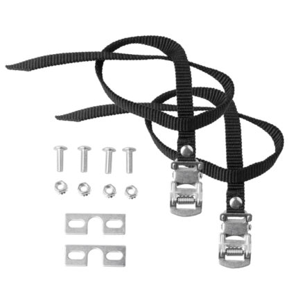 Plastové pedálové košíky (tzv.klipsne) s 2 upínacími ramenami, na ktorých sú otvory pre remienok – bránia zosúvaniu nôh z pedálov