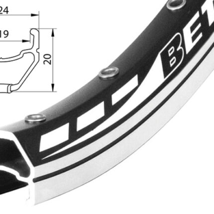 Jednostenný ráfik materiál: AW 6063 – špeciálna Al zliatina so zlepšenými vlastnosťami, prevedenie: natural duralový povrch, vnúrtorná šírka profilu: 21mm, výška profilu 14mm. Hmotnosť 228g.