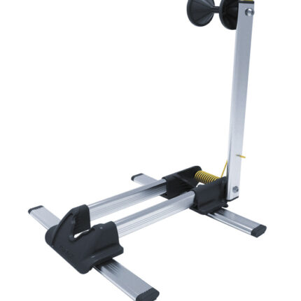stabilizačný držiak kormidla, vidlice a predného kolesa na montážnom stojane, nastaviteľná dĺžka háku pre väčšinu rámov, materiál: dural + plast, rozmery: 34×9,4x10cm, hmotnosť: 100g