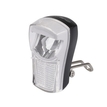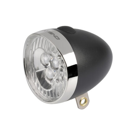 Moderné predné batériové svetlo s 3 LED diódami (25 Lumen). Vhodné pre mestské a trekkingové bicykle.