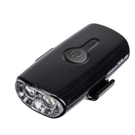 USB nabíjateľné výkonné predné svetlo s 2 bielymi LED diódami, umiestnenými v zväčšovacej optike.